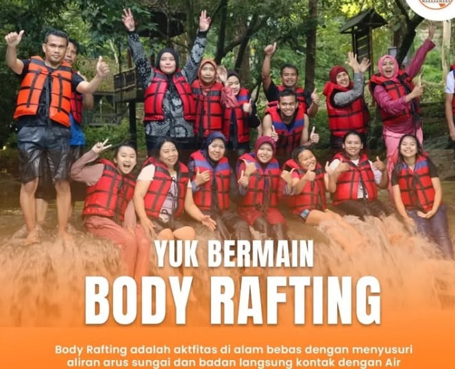 Body Rafting adalah aktivitas wisata petualangan di sungai atau aliran air, di mana peserta menyusuri arus sungai hanya dengan tubuh mereka sendiri tanpa menggunakan perahu atau ban, tapi tetap memakai pelampung, helm, dan perlengkapan keselamatan lainnya.
